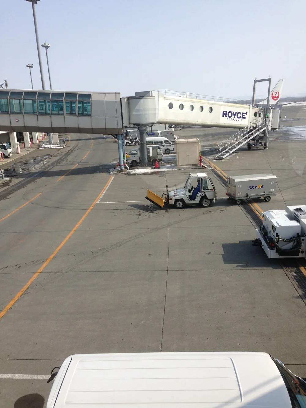 The hours moved along and apparently so too did the storm in Sapporo, until eventually our flight boarded, flew and landed at New Chitose Airport on the Island of Hokkaido. The snowy tarmac as mentioned above.